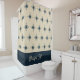 navy blue compass & Monogram Beige Coastal home shower curtain