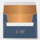 Editable text wedding dark midnight blue envelope featuring a faux copper rose gold metallic shinny liner and bride'a and groom's names initials on the back side. Insert your names letters and your address! Ideal for a trendy modern typography elegant indoor wedding. Matching stationery available.