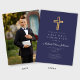 Personalized Navy Blue Cross Boy Photo First Communion Invitation.