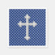 Elegant navy blue polka dot and cross christening napkins. You can personalize with the text message of your choice.