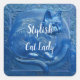 Navy blue Custom Art Nouveau cat Stylish Cat Lady Square Sticker