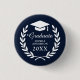The design of the button is both elegant and functional, with the navy blue background providing a striking contrast to the white laurel wreath and text. This ensures that your name and graduation year are prominently visible.