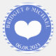NewparkLane - Modern design, personalized Round Sticker, with a navy blue striped pattern and a blue frame with a heart and your names in an elegant font.