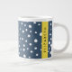 Navy Blue Dalmatian Dots, Spots, Dotted, Your Name Large Coffee Mug