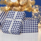 A wrapping paper designed with a navy blue dot pattern on a white background. Customize the white background among other options.
