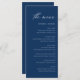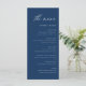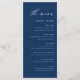 Add an elegant accent to your event tablescape with this customizable menu card. It features a whimsical script and simple typography. Personalize this modern menu card by adding your own details. This navy blue and white menu card is perfect for weddings, bridal showers, baby showers, and so much more.