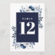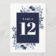 Navy Blue Elegant Country Floral Table Number