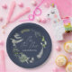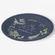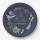 Navy blue elegant modern botanical script wedding paper plate