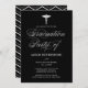 Navy blue and white medical school graduation party invitation featuring an elegant script, caduceus with a chevron pattern. This invitation is available in others colours.