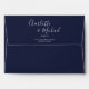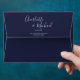 Featuring signature script names, this elegant return address envelope can be personalized with your names and address details in chic white lettering on a navy blue background. You can customize the background to your favourite wedding theme colour. Designed by Thisisnotme©