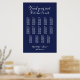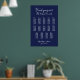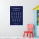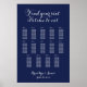 Navy blue elegant wedding seating chart with white changeable text - you can add Bride's and Groom's name, wedding date and guest's names (14 tables for 10 guest at each table).