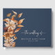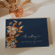 Navy Blue Fall Guest Book. Cherish the memories of your special day with the Wedding Guest Book from the "Fall Navy Blue Terracotta Floral and Leaves Wedding Invitation Collection." This beautifully designed guest book features exquisite hand-painted fall leaves and a floral pattern on a black background, creating a stylish keepsake for your guests' heartfelt messages. Capture the essence of your autumn wedding and create a lasting memento. Order now to ensure every detail of your wedding is perfectly coordinated!