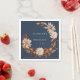 Navy Blue Fall Wedding Napkins. Complete your table settings with these paper napkins, designed to pair with the "Navy Blue & Terracotta Fall Wedding Invitation Collection." The wreath of hand-painted autumn leaves and florals adds a seasonal touch, beautifully framing your guest’s experience. The rich hues of copper and rust against the navy background create an elegant, cohesive look for your fall wedding. Let these napkins add the finishing touch to your reception with autumn charm.