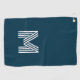 Go golfing in style with this Navy Blue Fathers Day Simple Monogram Golf Towel. Customize the dark blue background to any colour. This minimalist design has a large monogram is in white trendy retro lines style on the centre. Perfect gift idea for a golfer!