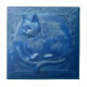 Navy Blue faux relief Art Nouveau Cat Tile