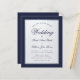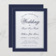 A simple, classic budget wedding invitation. It has a navy blue and faux silver rectangular frame and navy blue text on white background. The words Wedding and the names are written in an elegant calligraphic script.
