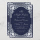 Navy Blue Faux Silver Vintage Rehearsal Dinner Invitation