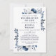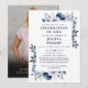 Navy Blue Floral Celebration Of Life Funeral Photo Invitation