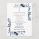 Navy Blue Floral First Holy Communion Invitation Postcard