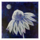 This Navy Blue Floral Poster features a bold white coneflower and a full moon. The contrast of the deep blue background and the white coneflower is striking and stunning. The original painting, titled An Evening Kiss, was done with acrylic inks and acrylic paints.