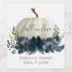 Add a personal touch to your bridal shower and wedding wine labels with this fall themed design. This design features a rustic white pumpkin nestled in a bouquet of watercolor painted navy florals and lush greenery. Elegant classic fonts tie this design together. See the entire collection for more matching items!