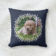 Navy Blue Floral Wreath Puppy Dog Photo Throw Pillow