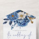 Navy Blue Florals QR Code Script Wedding All In One Invitation