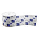 Navy Blue Flowers and Silver Crowns Satin Ribbon