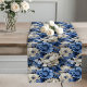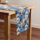 Navy Blue Flowers Ivory Floral Table Runner