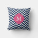 Navy Blue Fuschia Zigzag Pattern Monogram Throw Pillow