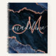 This monogrammed notebook features an elegant modern script monogram with navy blue and rose gold agate geode design. Personalize it with your name and monogram.