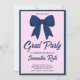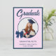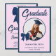 Navy Blue Gingham Bow Photo Graduation Party Invitation