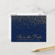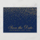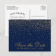 Navy Blue & Glam Gold Confetti Save The Date Announcement Postcard