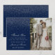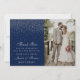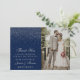 Navy Blue & Glam Silver Confetti Wedding Photo Thank You Card