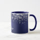 A navy blue background. The blue colour is uneven. Decorted with faux glitter drops. Personalize and add a name and monogram initials. The name is written with a modern hand lettered style script.