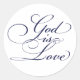 Ideal as a seal to envelopes, goodie bags, or wedding favours, these Navy Blue God is Love Christian Wedding Stickers are a beautiful way to honour your guests. The classic navy and white calligraphy design means they will coordinate nicely with a variety of different wedding styles.