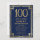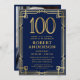 Navy Blue Gold 100th Birthday Photo Surprise Party Invitation