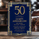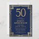 Navy Blue Gold 50th Birthday Photo Invitation