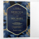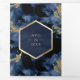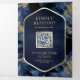 Navy Blue Gold Abstract Fluid Ink QR Code Wedding Tri-Fold Invitation
