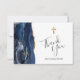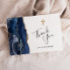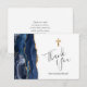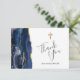 Navy Blue Gold Agate First Communion Thank You Card