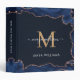 Navy Blue Gold Agate Geode Monogram Script Name Binder