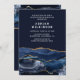 Navy blue and gold agate graduation party invitation.