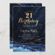 Navy Blue Gold Agate Marble 21st Birthday Invitation