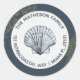 Navy Blue Gold and White Coastal Seashell Address Classic Round Sticker