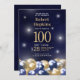 Navy Blue Gold Balloons 100th Birthday Party Invitation
