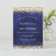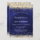 A modern, stylish and glamourous invitation for a 21st (or any age) birthday party. A navy blue background, decorated with faux gold glitter dust. The blue colour is uneven. Personalize and add your name and party details.