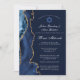 Elegant navy blue and gold agate decorates this B'nai Mitzvah ceremony and party invitation for a Jewish family celebrating their child being called to the Torah. The two names are written in beautiful formal script under the Star of David for a joint celebration.