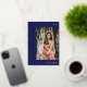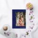 Elegant navy blue and gold graduation invitation personalized with one photo on the cover and three more photo on the back. Double sided graduation invitation printed with gold foil against a navy blue background. 2 in 1 graduation announcement and invitation personalized with photos and the graduate's name in gold foil.
