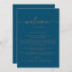 This navy blue gold classic wedding welcome letter is perfect for a modern wedding. The simple and elegant design features classic and fancy script typography in gold.