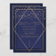 Navy Blue Gold Confetti Geo Border Wedding Invitation